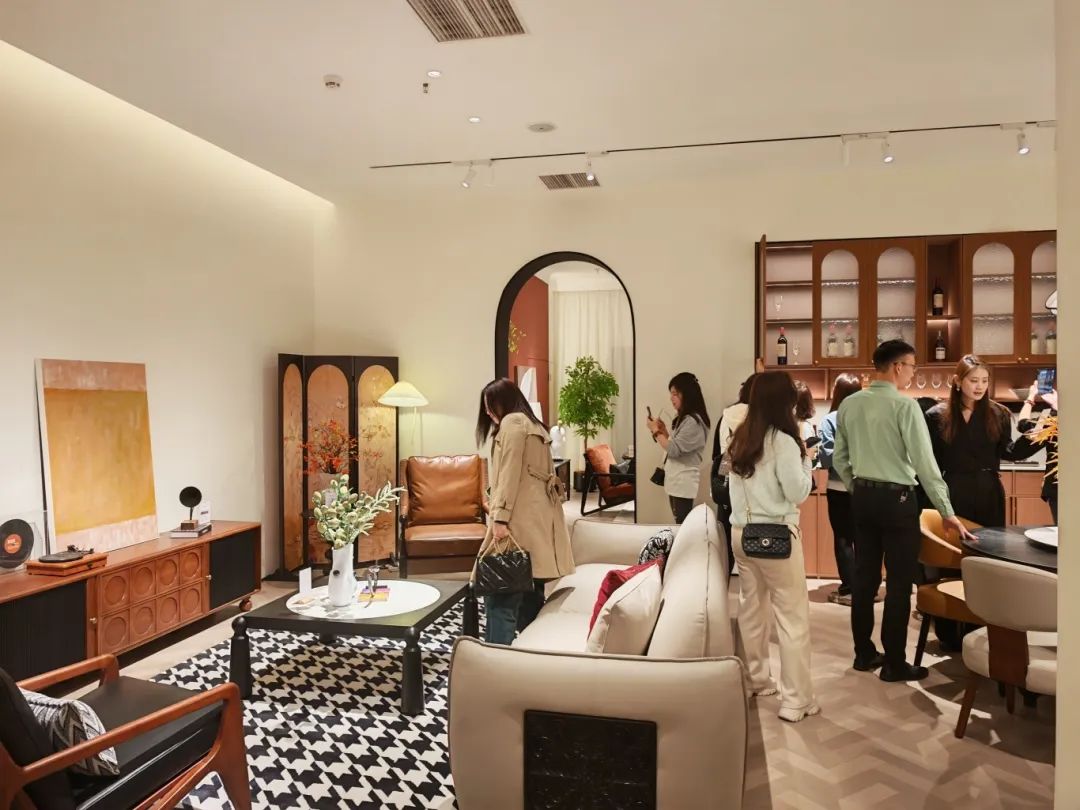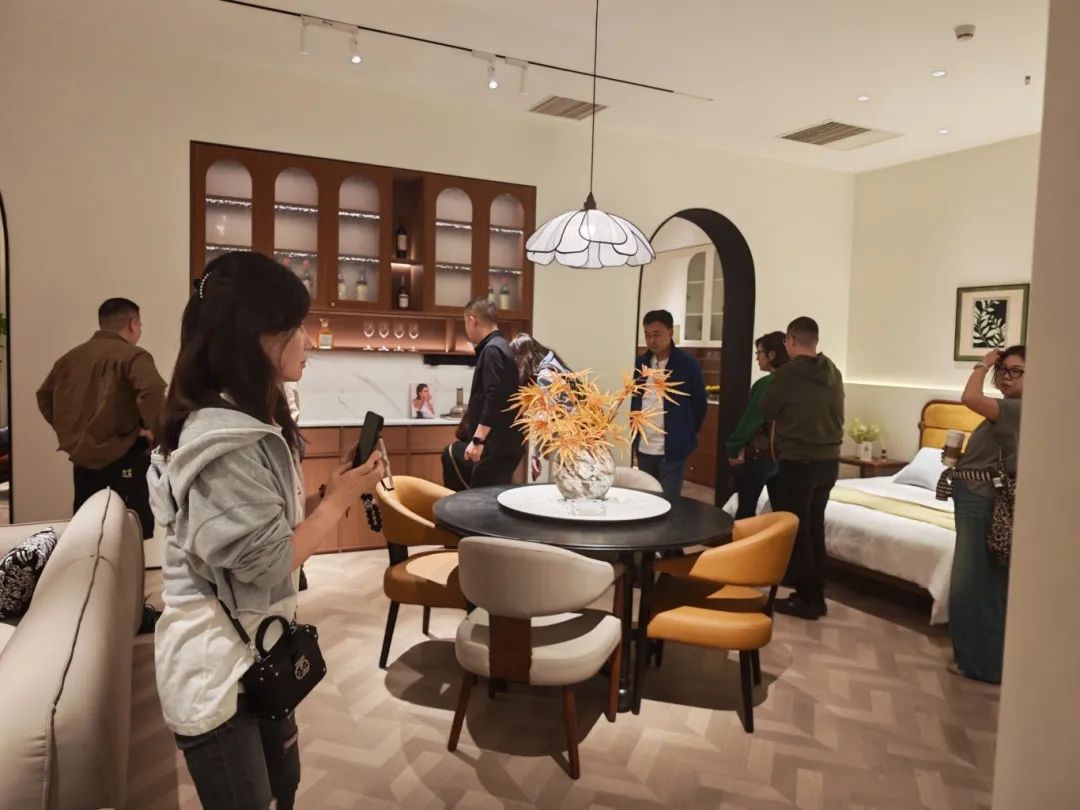 新品发布品鉴会现场,九游中古全案凭借独特的空间布局,创新的时尚设计,优质的材料细节以及精心的场景营造,吸引了全国优秀经销商及业界嘉宾们的目光,他们沉浸在高级的美学世界里,感受创新与品质交织的魅力。九游中古展厅里人潮涌动,众多经销商都对中古全案新品的创新设计称赞有加,现场签约不断,气氛热烈。