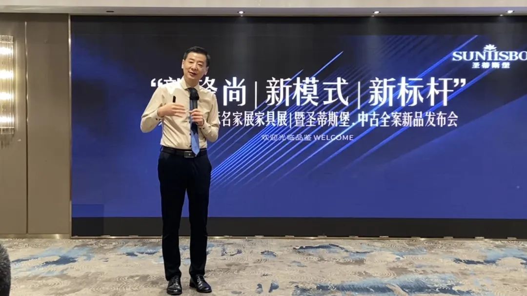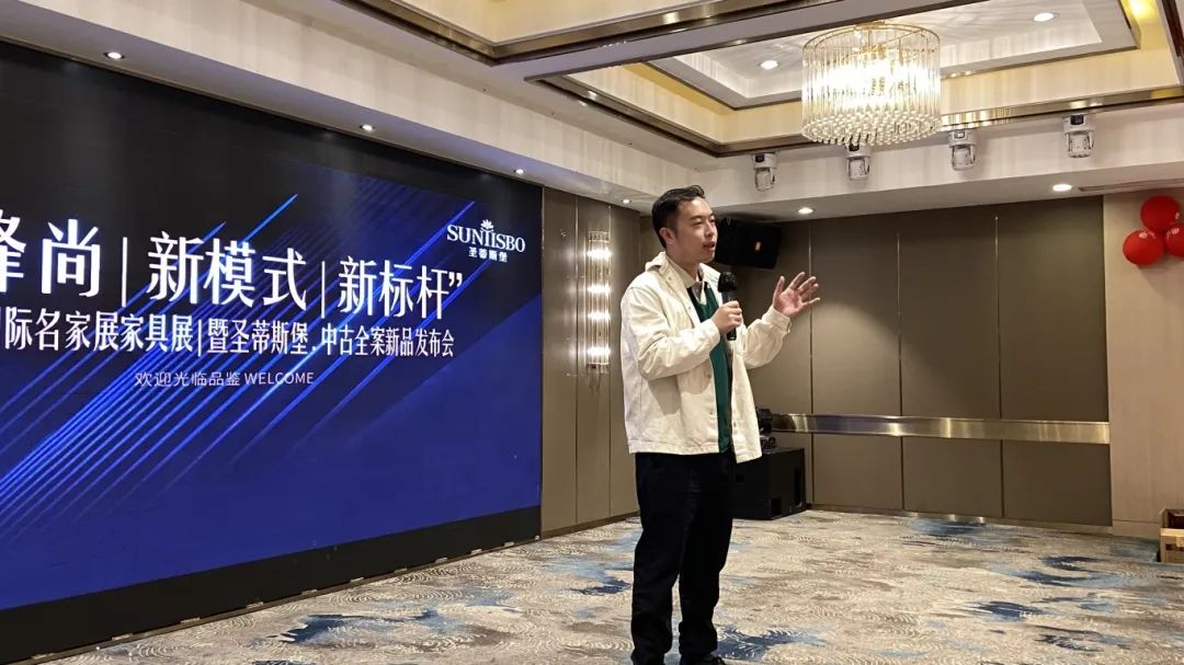 接下来,九游工业营销部副经理吴天喜先生为我们重磅揭晓了2025春季新品中古全案系列和新古典全案升级新品,他从选材、设计、风格、工艺等方面进行了全面的讲解,并提到此次中古新品的全案模式是以更具设计感的创新方式,给予消费者整体性的体验感升级,助力大家在激烈的市场竞争中,突显差异化的优势,实现业绩的飞跃式增长。